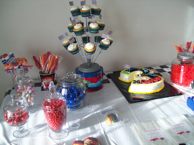 These are pictures from my son's race car party. He loves race cars of any kind. I don't like to use a lot commercial party items so I only incorporated a few. This was such a fun party and I even found my little man a racing t-shirt from The Children's Place that went perfect with his party theme! Adults and Children had a ball!